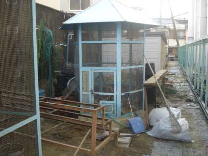 校舎裏に、現在使われていない、飼育小屋と鳥小屋があります。