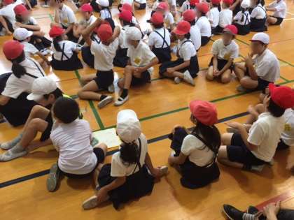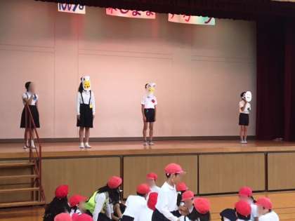今日の児童集会は、「どのキャラクターが上手にできるか当てよう!!」でした。人気キャラクターがいろいろな運動をして、その順位を班で予想しました。正解した児童からは、笑みがこぼれていました。