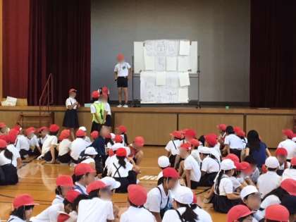児童集会で「夏休みビンゴ」をしました。班の友だちと協力して、夏休みに関係するキーワードを選んでビンゴのマスを作りました。自分の持っているキーワードを呼ばれると子ども達は喜んでいました。2列以上ビンゴになるチームもいて、大変盛り上がりました。
