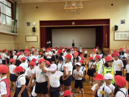 9月7日(木)に、児童集会がありました。ゲームは「学校4択クイズ」でした。班のメンバーで協力してクイズに挑戦していました。24班中1つの班だけ正解するシーンがあり、とても盛り上がりました。