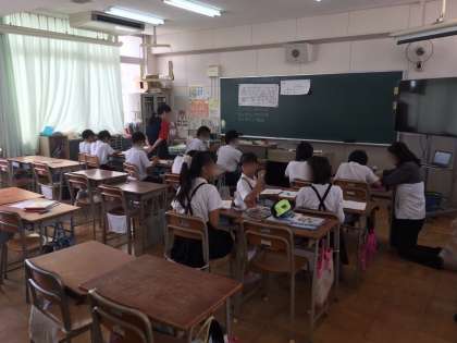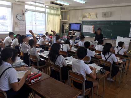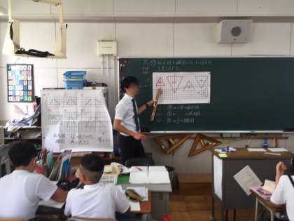 6年生は算数科の「拡大図と縮図」をしました。対応する辺の長さの比や角の大きさに気をつけて拡大図や縮図を見つけることができました。