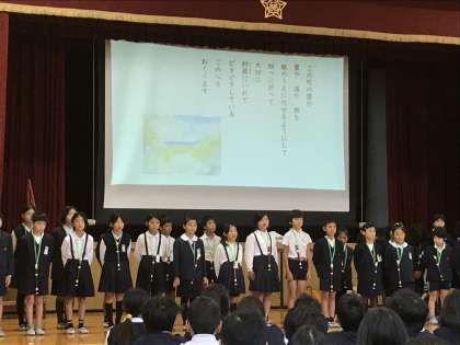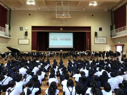 11月9日(木)に、四年生の学年発表がありました。詩や俳句の朗読、リコーダー、歌唱。日々の学習の成果をしっかりと発表することができました。1番人数の多い学年、とても迫力がありました!!