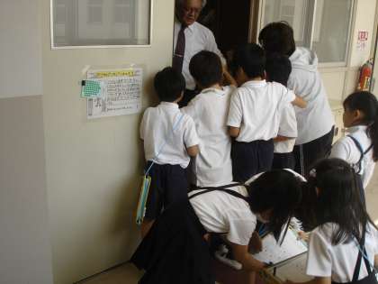 今日の5時間目は、1・2年生が学校探検をしていました。