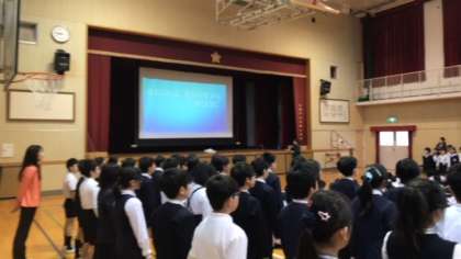 児童朝会で「いじめを考える日」の話が校長先生からありました。