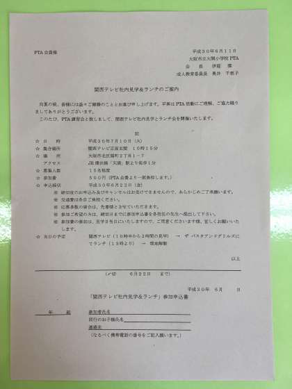 本日大開小学校PTA成人教育委員会からのお手紙を配布させていただきました。ご確認よろしくお願いします。