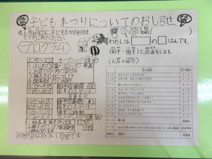 6月16日土曜日に子どもまつりを行います。子どもたちが学級ごとに、おもいおもいの楽しいお店を考えて、準備しております。是非、たくさんの皆様のお越しをおまちしております。