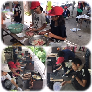 釜に火をつけてカレー作りに班で協力しています。 iPhoneから送信