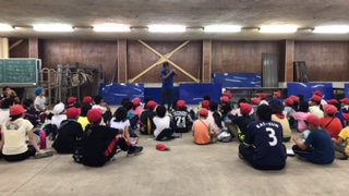 焼き板工作の説明を受けています。説明をしっかりと聞いて、思い出になる作品を作ります。