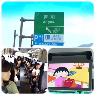 バスでは、ちびまる子ちゃんのビデオを見て過ごしています。青垣を通過しました。