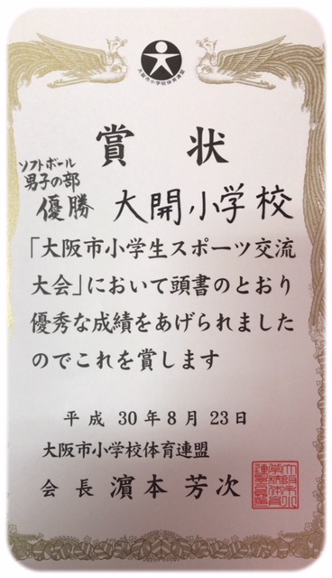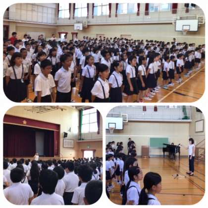 二学期の始業式が講堂で行われました。はじめに、ソフトボール男子の部が大阪市で優勝し校長先生から表彰状が代表に手渡されました。始業式で校長先生から、3点についてお話しがありました。(1)ルールを守り、いじめのない学級・学校にしてほしい。(2)一時間一時間の授業を大切にしてほしい。(3)自然やスポーツに親しみ、からだを鍛えてほしい。です。