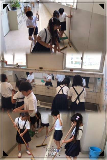 二学期が始まりました。気持ち良く勉強ができるように、清掃活動をしています。