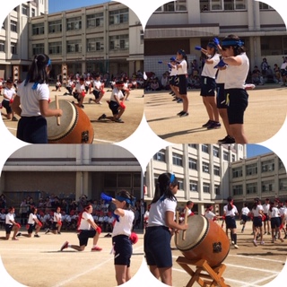 午後からの部です。全校児童332名による応援合戦です。力を合わせて、頑張るぞ!