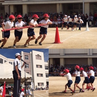 4年生による団体競技です。台風の目です。台風24号に負けない勢いで駆け巡るぞ。
