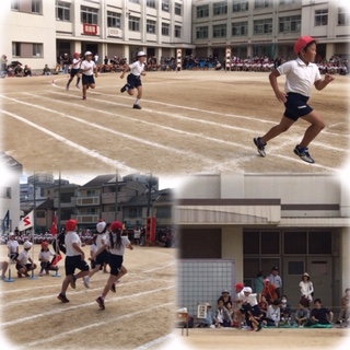 4年生の徒競走です。カラフル ダッシュで一番めざしてがんばるぞ。