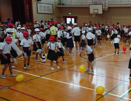 風船を団扇で扇ぎながら、陣地に移動させていくゲームです。