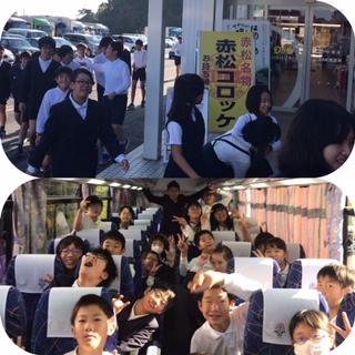 赤松サービスエリアに到着しました。トイレ休憩です。予定より早くサービスエリアに到着しました。全員元気です。