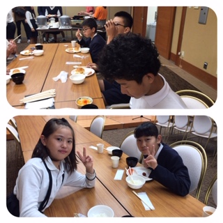 生活班のメンバーで座り、朝食バイキングです。しっかり食べて、二日目も頑張るぞ。