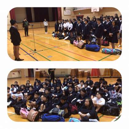 大開小学校に全員元気に到着しました。講堂で帰校式を行いました。