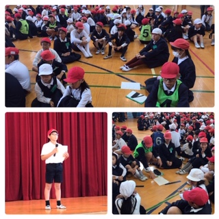 児童集会では、歌詞当てクイズが行われました。縦割り班の人と協力し合い答えを見つけたりしました。