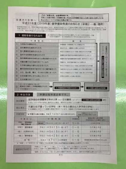 平成31年度就学援助制度について!