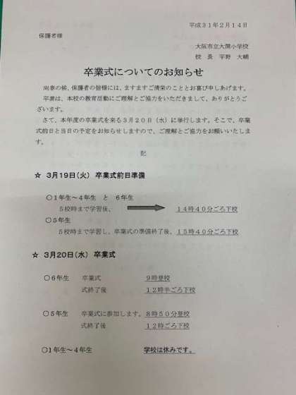 卒業式のご案内について!