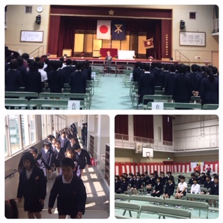 4月5日の入学式の準備をしています。入学式では、在校生からの歌や演奏など行います。最終リハーサルを真剣に行っています。