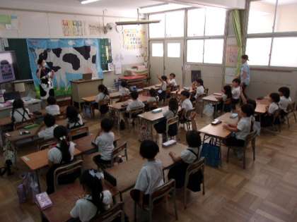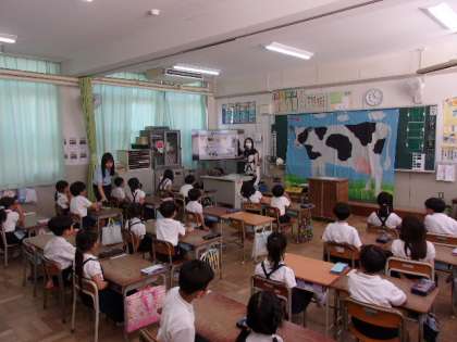 1年生は明治乳業さんに来ていただき、牛乳について学びました。牛についての話や、食べ物の命について教えてもらいました。