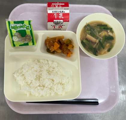酢豚、中華みそスープ、まっ茶大豆、ごはん、牛乳です。