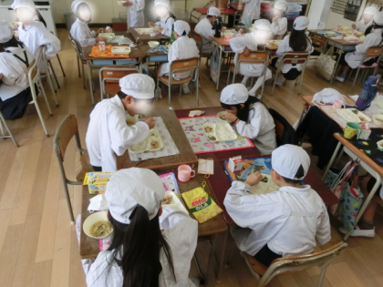 今日は3年生の給食タイムの様子です。1年生2年生と3年生の給食を見ましたが、おいしく給食を食べるだけでなく、行儀よく、給食時のルールに気をつけながら食べていました。
