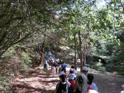 途中の険しい上り道では、岩を目の前にして「無理や」と誰かが言うと、近くからすっと手を差し伸べる児童がいました。「荷物持とうか」「○○がんばって」などハイキングの道のりは、仲間への思いやりであふれていました。