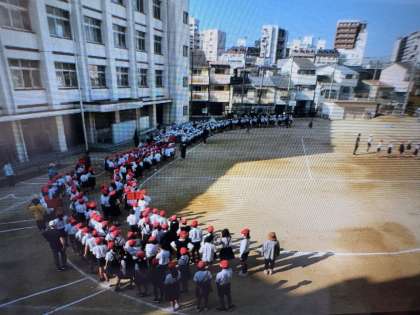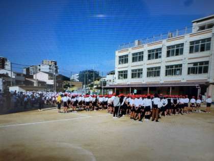 今朝は体育朝会で、運動会の入場の練習をしました。どの学年も先生の指示を聞きながら入場確認をしていました。