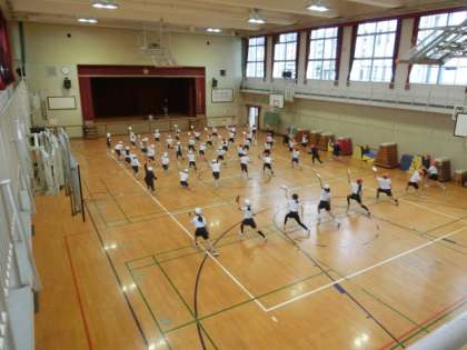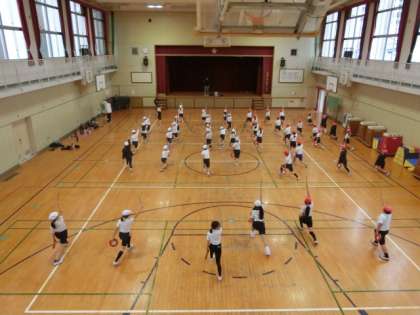 今朝は応援全体練習を予定しておりましたが、ぽつぽつと雨が降っていたので明日に延期となりました。3時間目には講堂で4年生がエイサーの練習をしていました。太鼓の音やかけ声が講堂中に響き渡っていました。運動場で見られる姿が待ち遠しいです。