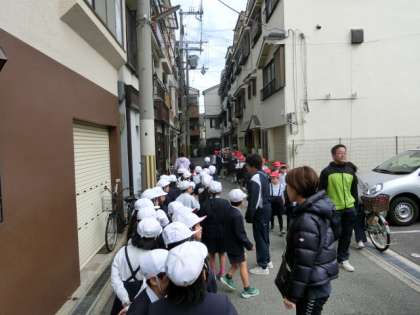 今日は、2年生の生活科「町たんけん」に向けて、訪問させていただくお店の場所を確認しに行きました。