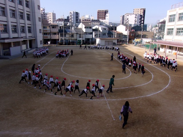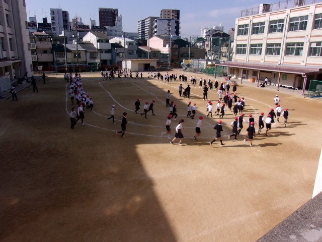 1時間目と3時間目の後の休み時間に、運動場で学年ごとに持久走を行っています。