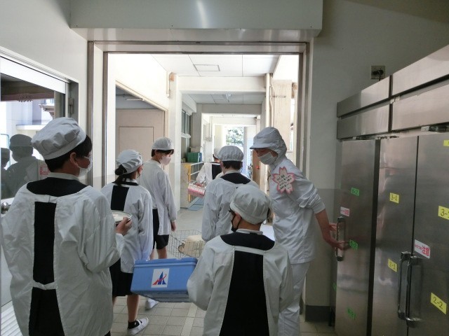 今日は、6年生にとって小学校最後の給食の日でした。配膳室に給食を取りに来た際には、調理員さんから6年生へメッセージが送られ、温かい雰囲気の中での給食となりました。