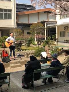 4月6日 土曜日に鷺洲小学校の中庭でふれあい喫茶が開かれました。