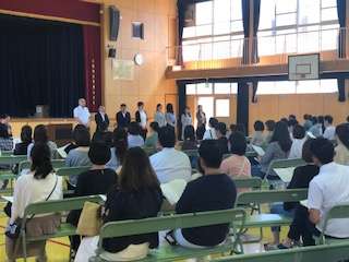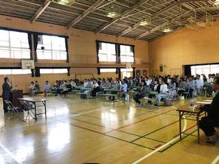 土曜授業の中、参観終了後、多くの保護者の皆様にお集まりいただき令和元年度PTA総会が開催されました。