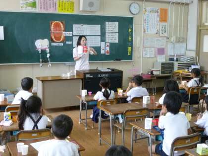 2年生が、歯科衛生士さんから歯の健康を守るため、歯みがきの大切さを学習しました。磨き方には個人差がありますが、講師の先生からは、歯ブラシの持ち方・当て方・動かし方や、鏡を見ながら磨くなど、細かく指導していただきました。せっかくの機会、子どもたちには、すぐに実践してほしいです。