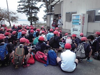 第1日目。お天気が心配でしたが、今のところ雨は降っていません。10時過ぎに無事「びわこ青少年の家」に到着しました。予定を変更し、天候のよいうちに「カッター」に乗ります。