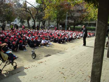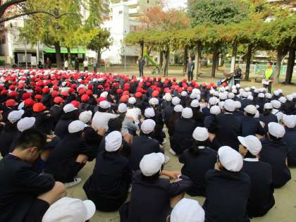 11月26日(火)の3時間目に、避難訓練をしました。今回は、地震発生時に安全に避難することができるよう訓練しました。
