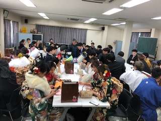 本日14時より、鷺洲コミュニティセンターにおいて、成人の日を迎えた卒業生たちが同窓会に集いました。