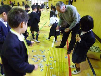 地域の方をお招きして、1年生が「昔遊び」を体験しました。どのコーナーでも、子どもたちは目を輝かせ、とても楽しく活動できました。時間があっという間に過ぎ、残念がる子が多かったです。19名もの地域の方が、1年生のために快くお集まりいただき、有り難く思います。