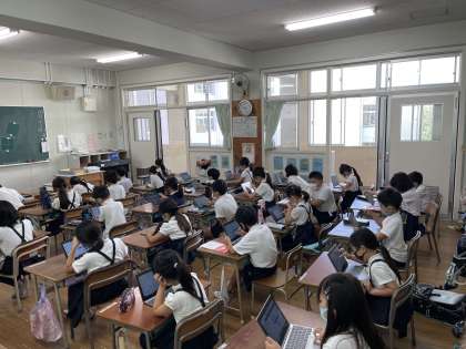 2年生は、デジタル学習ドリルや、生活科の町たんけんの学習でICT機器を少しずつ活用しています。
