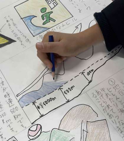 4年生の総合では防災について調べたことをグループごとにまとめています。