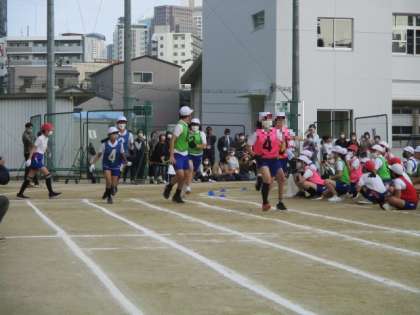 6年生は個人走と”リレー”をしました。