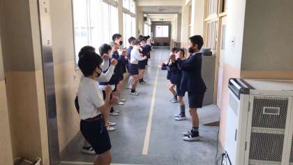 一泊移住2日目の朝、みんなの前で自信をもって体操ができるように、がんばるゾ‼