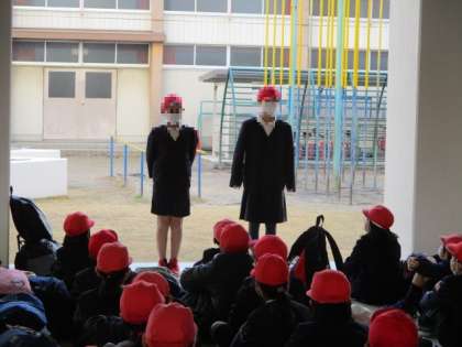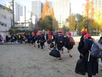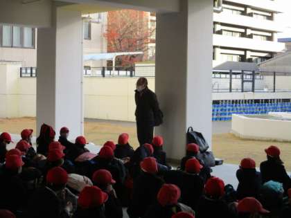 マイクを使わず、大きな声で堂々と出発式をピロティで行いました。