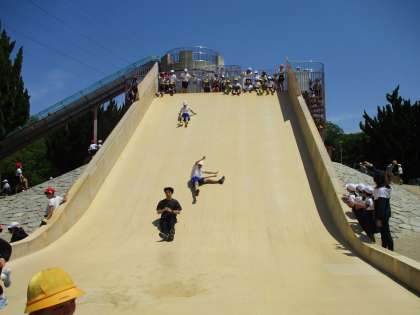まずは、ぼうけんランドに向かいました。着いた瞬間、思わず「わあ。すごい!!」と言ってしまうぐらい大きな滑り台やアスレチックがたくさんあり、友達と楽しそうに遊んでいる様子が見られました。