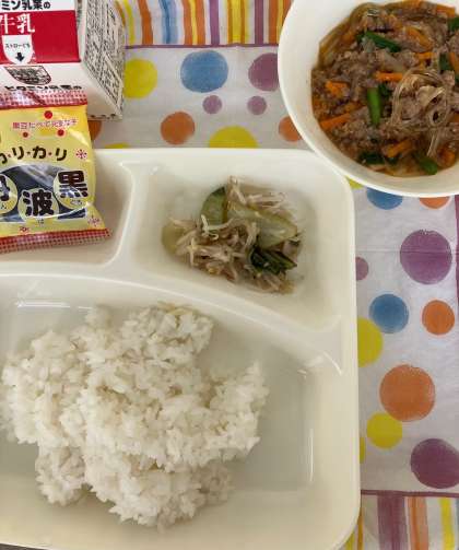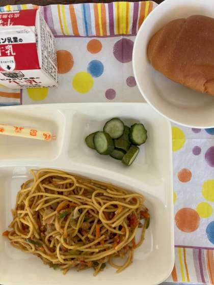 今週の献立は、児童に人気のトマト味のフレッシュトマトのスープ煮や、スパイスのきいた中華煮やあつあげのピリ辛じょうゆかけ、マーボーはるさめ、カレースパゲッティなど、蒸し暑くても食欲がそそられるメニューが多くでました。