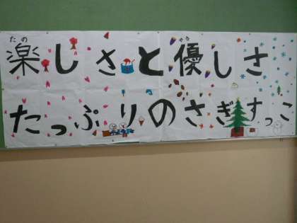 この掲示物は、運営委員会が約2週間かけて、休み時間にコツコツと作業をして仕上げました。さぎすっこのみんなが、毎日楽しく元気に過ごし、優しさたっぷりに育ってくれることを願っています。